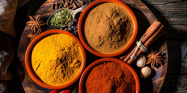 Eggs, tamarind paste, green chilies, ginger, and homemade spices.
